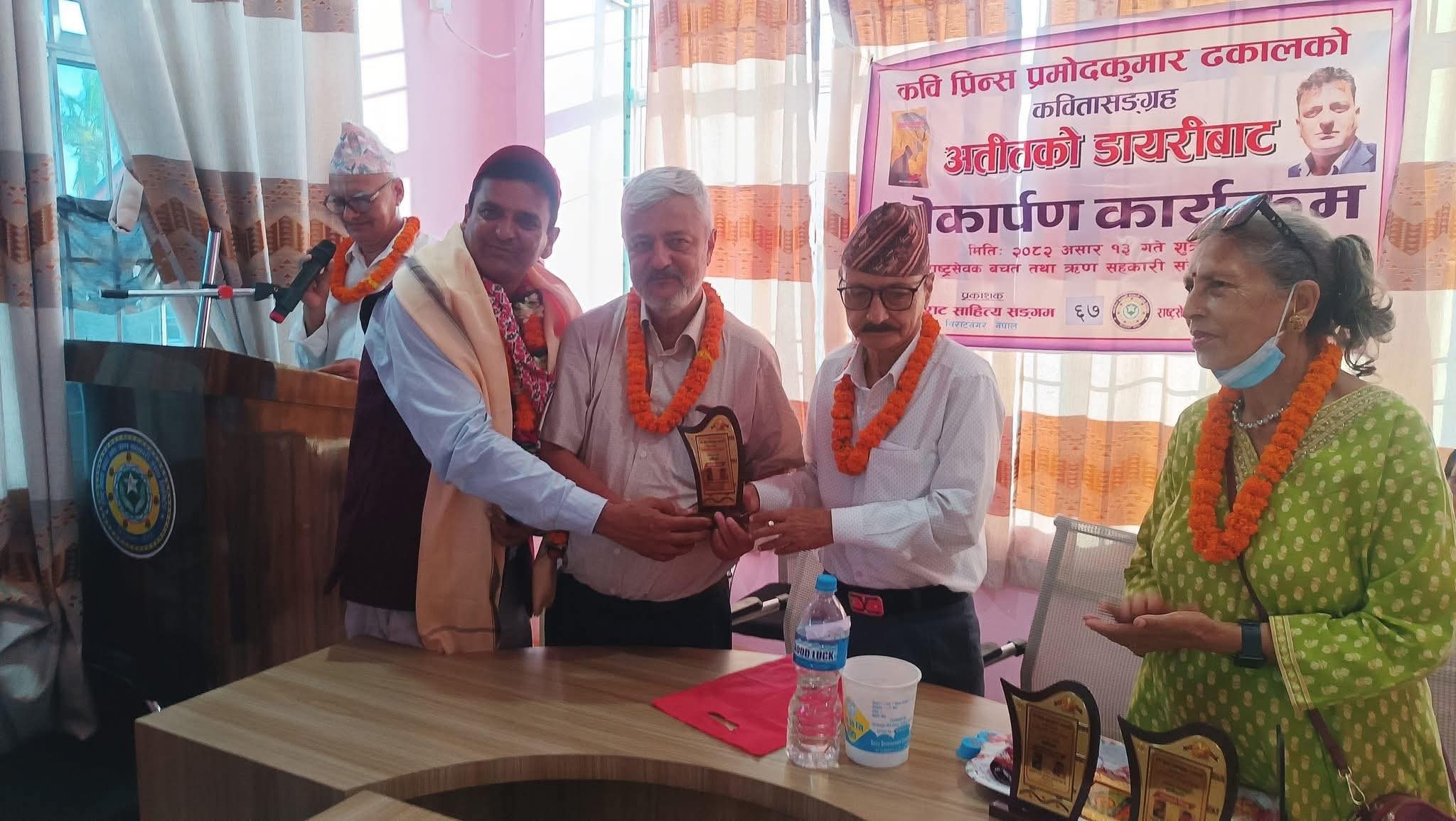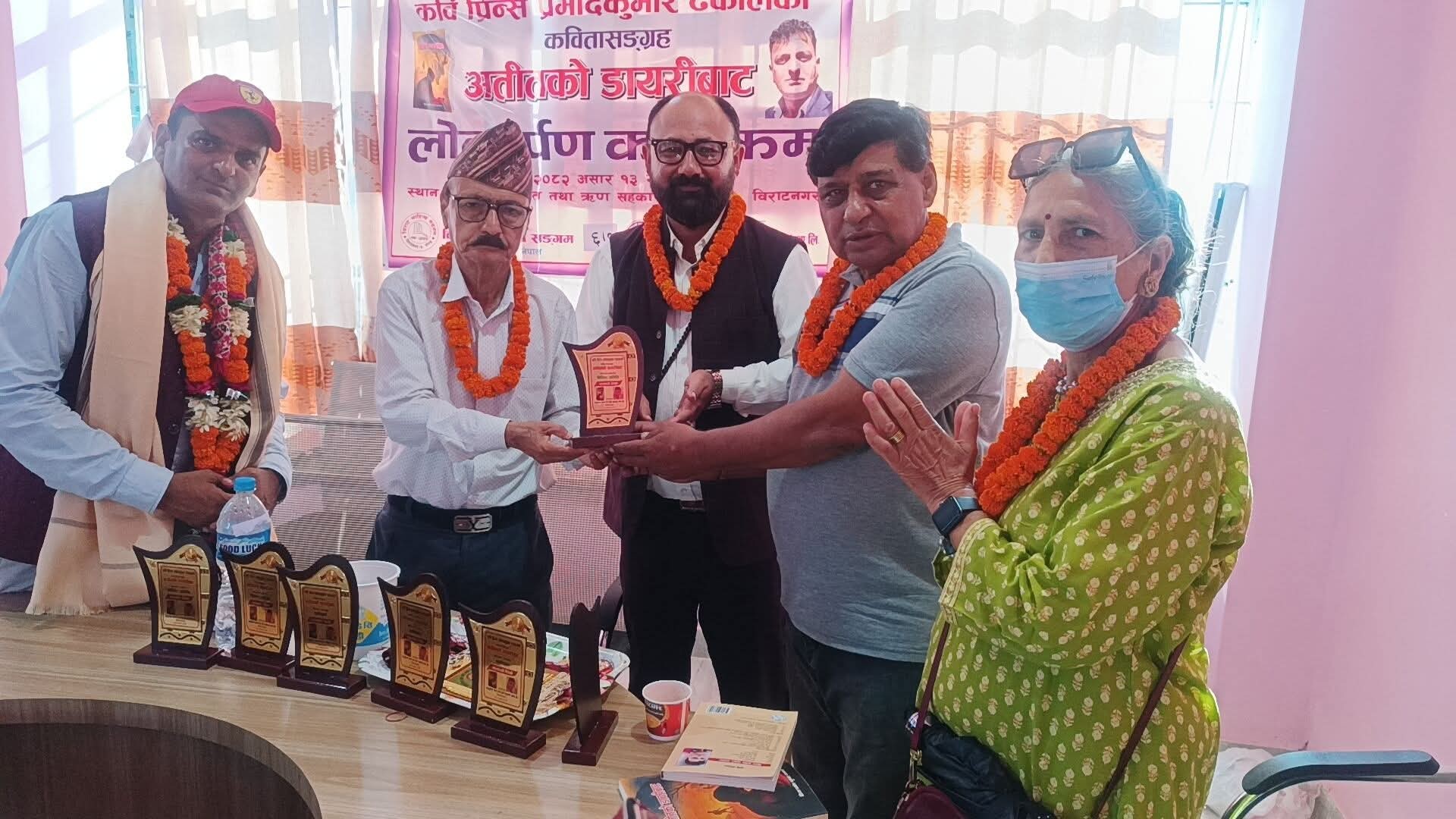 मोरङ: कवि प्रिन्स प्रमोदकुमार ढकालको पहिलो कवितासङ्ग्रह ‘अतीतका डायरीबाट’ लोकार्पण गरिएको छ। विराटनगरस्थित राष्ट्र सेवक बहुउद्देश्यीय सहकारी संस्थाको सभाहलमा भव्य साहित्यिक समारोहका बीच उक्त कृतिको विमोचन गरिएको हो।